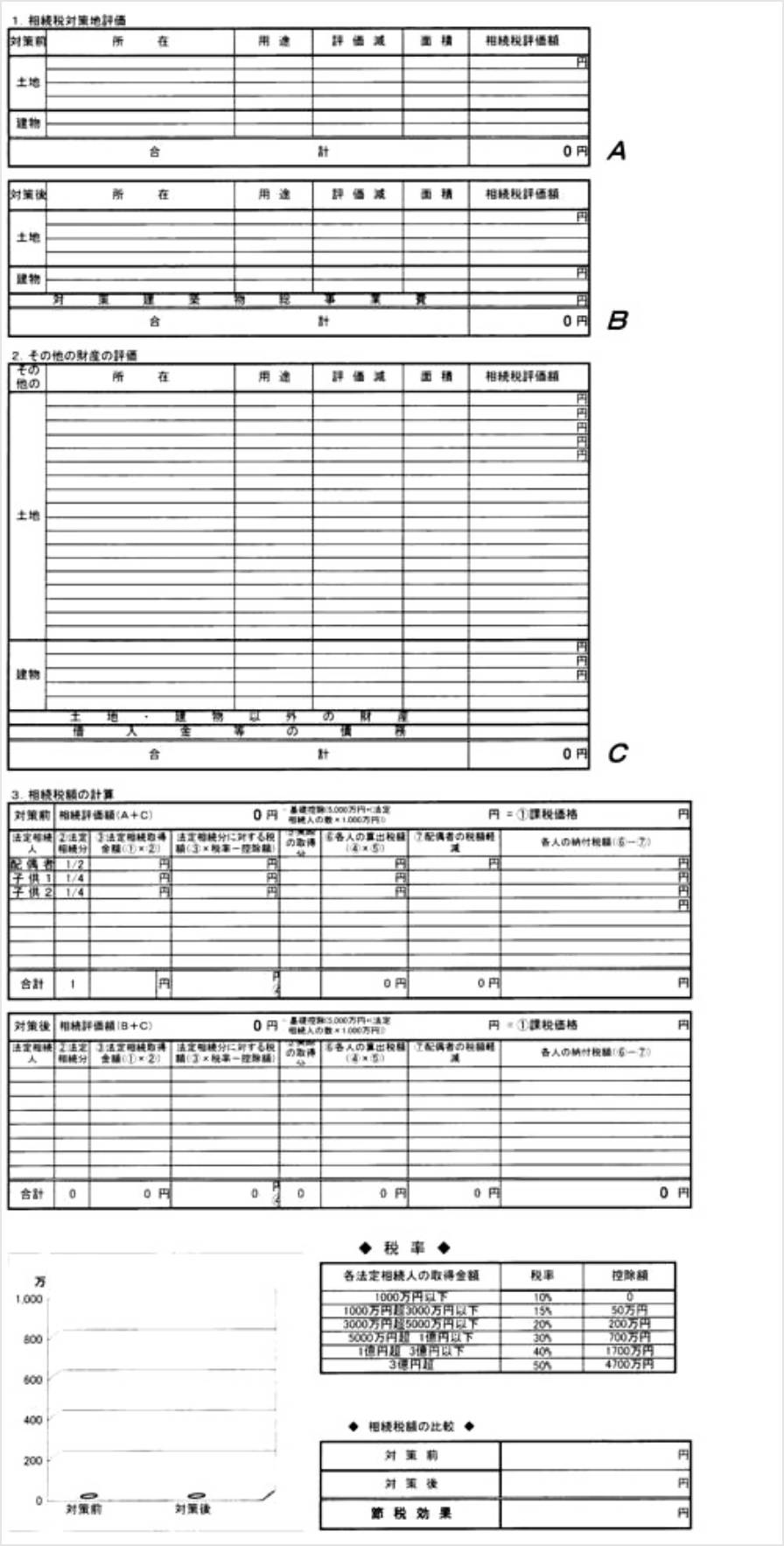 相続に必要な情報をご提供いただければ、下記概算比較診断シートにてご提案させていただきます。